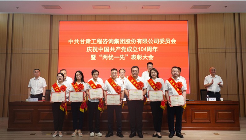 7月1日,甘肅工程咨詢集團召開慶祝中國共產黨成立104周年暨“兩優一先”表彰大會,回顧黨的輝煌歷程,弘揚偉大建黨精神,全面展示集團黨建工作成效和黨員干部昂揚風貌,激勵各級黨組織和全體黨員凝心聚力、擔當作為,奮力推動集團公司高質量發展邁向新臺階。集團公司黨委書記、董事長張佩峰出席并講話,總經理、董事陳一夫及在家領導班子成員出席,黨委委員、副總經理孟康榮宣讀表彰決定,紀委書記、監察專員師宗正主持會議。