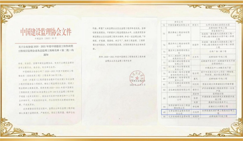 項目榮獲中國建設工程魯班獎,項目總監理工程師榮獲“先進個人”榮譽稱號