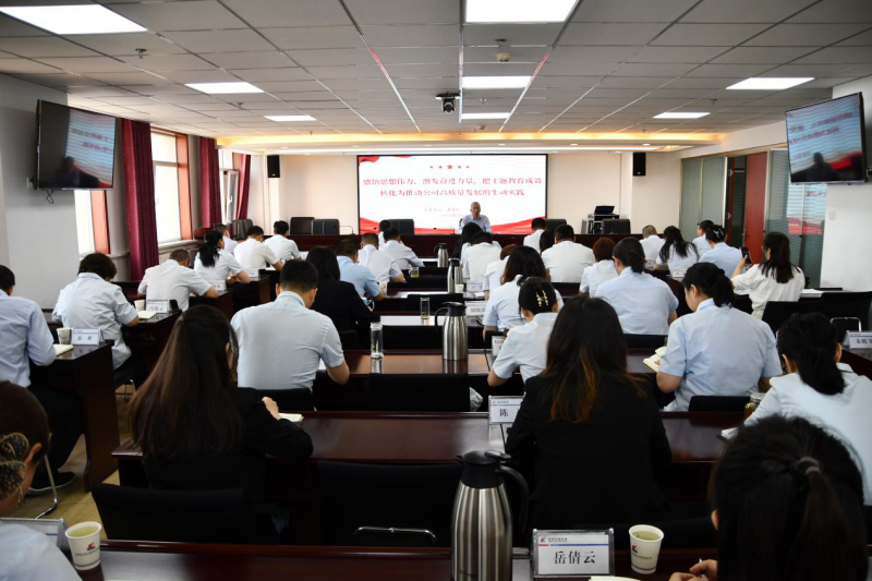5月19日,省交通監理公司黨委書記、董事長、主題教育領導小組組長為公司黨員干部講主題教育專題黨課。集團公司主題教育第三指導組成員到會指導。公司班子成員,機關全體干部、子公司全體黨員參會。