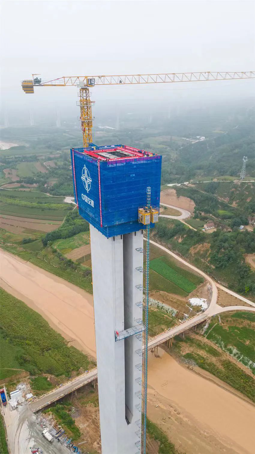 交通監理公司代建及監理的國內黃土地區跨度最大、墩高最高、聯跨最長矮塔斜拉橋——馬蓮河特大橋最高主墩成功封頂