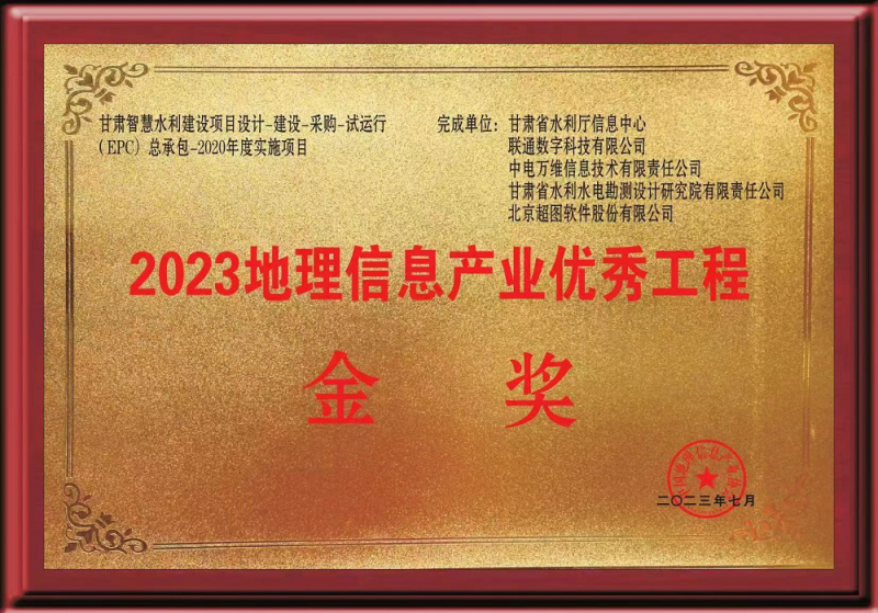 喜報|省水電設計院參與完成的甘肅智慧水利建設項目榮獲2023年中國地理信息產業優秀工程金獎