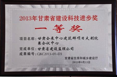 2013年甘肅省建設(shè)科技進(jìn)步獎一等獎