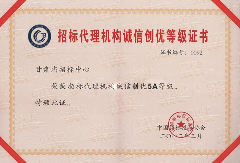 招標(biāo)代理機(jī)構(gòu)誠信創(chuàng)優(yōu)登記證書